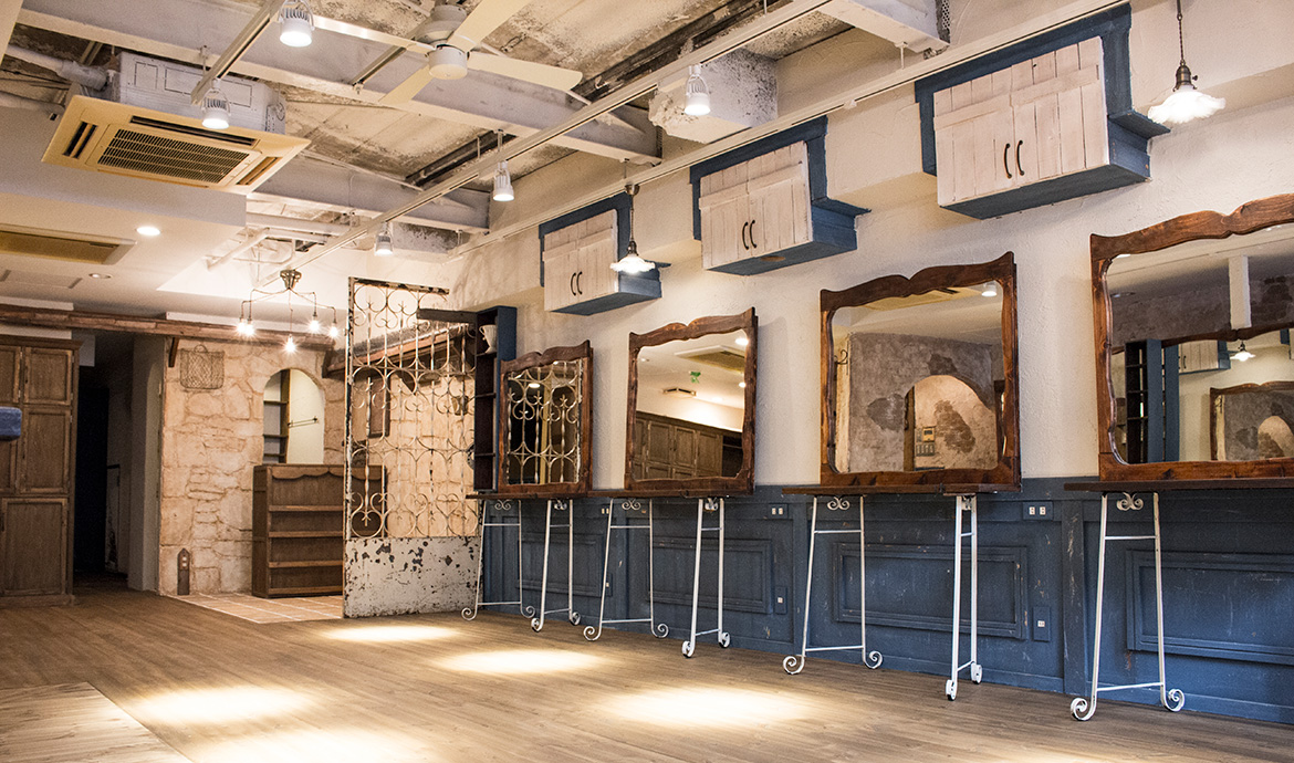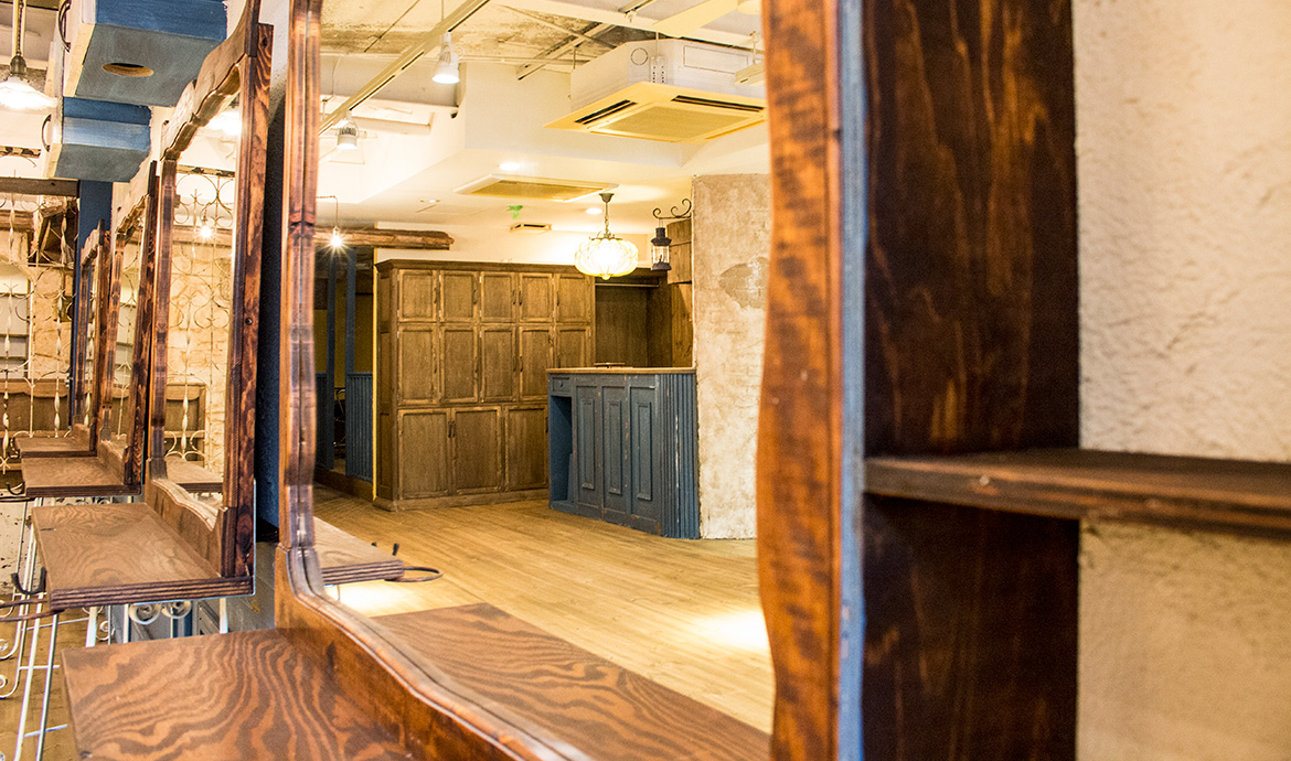 家具や什器もすべてA-TECH DESIGNプロデュースによるオーダーメイドで、アンティークらしさを出したどこか懐かしさを感じさせるヴィンテージ調に仕上げました。