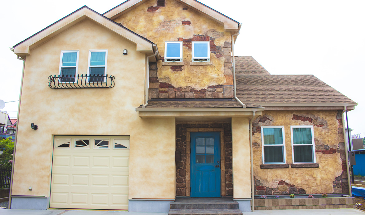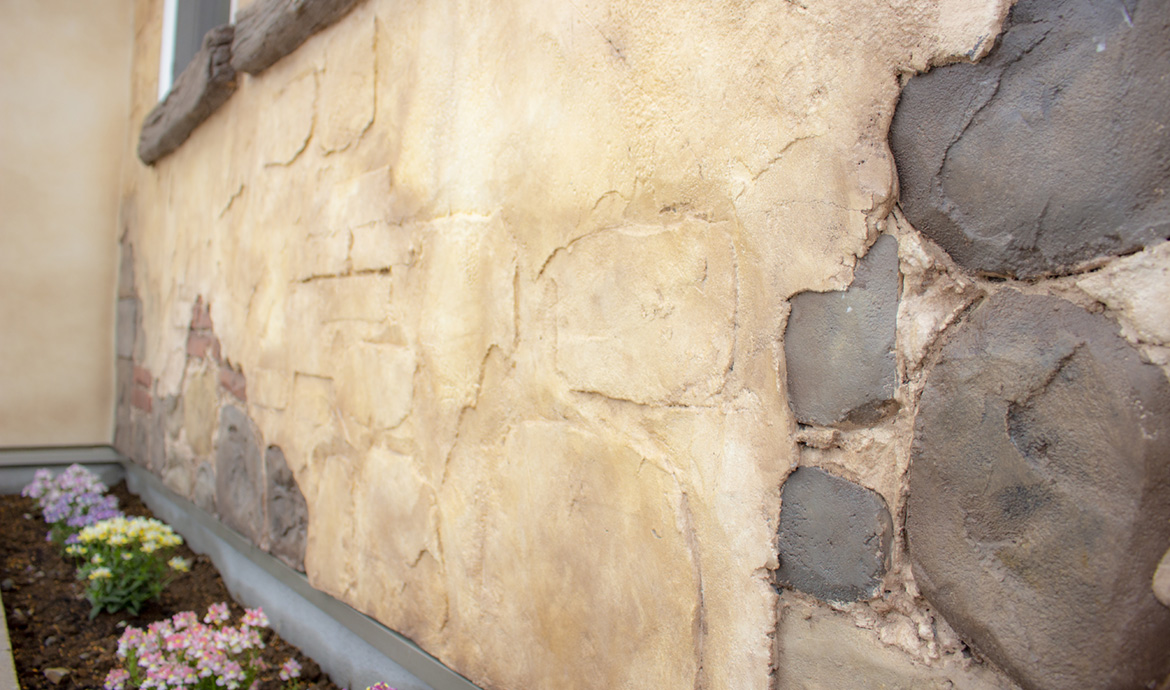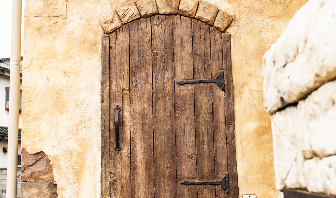 石積みやレンガのモルタル造形をふんだんに使い、アンティーク感やヴィンテージ感を全面に押し出したデザインになっています。